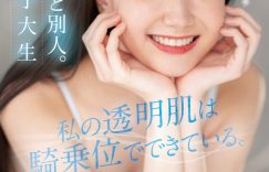 又是一台战斗机器!为什么这么说?让我们一块儿看看这位在片商kawaii*出道的新人「()」,封面很直接地说了她的三大优点:首先是「极细女子大生」,这意思是她瘦个像根竹竿,很适合喜欢排骨精的朋友服用,尤其是那不输伊藤舞雪的细腰应该会让人想按住她冲击小穴三千下;再来就是中间的「透明肌」,这意思是她皮肤好的不得了,已经不是超级掰的超级白,而是白到有点到半透明了,对笃信一白遮三丑的朋友这真是让人鸡动啊〜