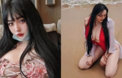 就喜歡看妹子在海邊的樣子!尤其是「黃靜」換上火辣性感的泳裝,深V開到肚臍的連身設計讓胸前風光都讓人看光光!在海邊一抹紅色超級搶眼,搭上雪白豐滿的豪乳,光是在沙灘上隨便一坐,就不知道吸引了多少目光駐足。 (圖片來源:Instagram ▶ ▶ ▶