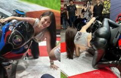 為期三天的2024南港重機展順利在上周末落幕了!其中有一幕想必許多老司機至今難忘,就是這位火辣騎士「艾妃Ai Fei」當眾示範過彎壓車的畫面,穿著寬鬆的灰色無袖,搭上緊身皮褲,一跨上重機翹起臀部就能顯出完美的蜜桃形狀,就在下壓的時刻更是驚艷全場,帥氣的重機配上從旁掉出來的超大車燈,讓現場快門閃光按個不停! (圖片來源: ▶ ▶ ▶