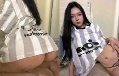 最近2024的巴黎奧運足球賽事激烈,許多粉絲也跟著換上支持的足球隊衣來應援,就像是這位火辣正妹「Nami」,穿著灰白相間的寬大T Shirt,小手撩起衣擺不得了,纖細的水蛇腰和黑色蕾絲細丁一覽無遺,就連渾圓美挺的蜜桃臀與蜜汁臀腿也跟著映入眼簾,邪惡誘人的畫面讓人愛不釋手! (圖片來源: ▶ ▶ ▶