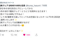唉,该来的还是来了。著名的痴女、也曾来到台湾参加成人博览会及摄影会的女优「蓮実クレア(莲实克蕾儿)」今天凌晨发表了AV引退宣言,除了不再拍片,在9月25号、出道10周年的时候她也要退出经纪公司AllPro: