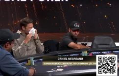 【EV扑克(www.evp86.com)报道】丹牛周六晚上或许连走直线都困难,但这似乎并未影响他在拉斯维加斯PokerGO演播室举办的$100,000买入“超级豪客碗”比赛中打出扎实的扑克——这大概要归功于他饮下的葡萄酒。