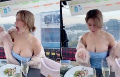 真的好狂~擁有超高人氣坐擁兩百多萬粉絲追蹤的情色女王「辛尤里」,最近人都在新加坡度假玩耍,前陣子還搭了當地知名的纜車,據說可以在上面用餐兼看日落美景,辛尤里當然也沒錯過啦!換上性感爆乳緊身小洋裝,搭配美酒美食和美人美景,還有誰看了不會醉?難怪辛尤里po出的纜車影片短時間內就有將近十萬人收看,真的不得了~ 不光是在上面用餐,辛尤里第一次搭乘纜車時還趁著夜色「大膽行事」,直接解放兩顆豪乳,雪白渾圓的美胸在夜色中更加突兀漂亮!而辛尤里只用兩個酒杯擋住重點,溢出的渾圓形狀任誰看了都受不了吧! 平常辛尤里就很樂於在instagram分享生活日常,走到哪辣到哪的她福利通通發好發滿沒在手軟,難怪貼文總是萬人紅心起跳,目前ig粉絲更是多達265萬人啦! 傳送門IG:yui_xin_文/薇薇WEI