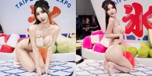 其中在JVID舞台上,有一位不容忽視的美豔正妹「愛妃教母」,穿著銀色的性感比基尼,纖瘦的體態卻不失凹凸有致的曲線,台上擺弄著誘惑挑逗的姿態,引來台下滿滿的讚嘆聲,還有不間斷的快門,就怕錯過一分一秒,都要捕捉這千年一遇的銷魂美體!