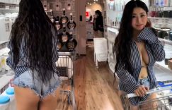 原來逛個家居店也能捕獲野生辣妹!在層架邊走來一個長髮正妹「艾瑪Emma」推著推車迎面而來,襯衫搭上牛仔短褲看似裝扮休閒,越靠近卻越感到逼迫感十足,尤其那雙飽滿又深邃的事業線,無罩在外趴趴走的邪惡行徑讓人捨不得眨眼,就連轉身後又是翹挺有肉的蜜桃臀,如此銷魂的好身材真是千年一遇啊! (圖片來源: ▶ ▶