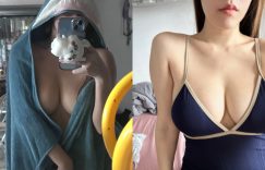 是誰住在鯊魚的大浴巾裡?洗澡可說是女人非常滿療癒的時刻,「語萱菈菈」洗得全身漫出迷人的芬香,衣服來不及穿就披上深藍色的鯊魚大浴巾,半裸的上身在鏡子前自拍,就算遮了大半張臉,卻也露出兩顆呼之欲出的兇猛美乳,還有下面若隱若現的蜜大腿,香甜可口的畫面誰不想馬上撲食? (圖片來源: ▶ ▶ ▶