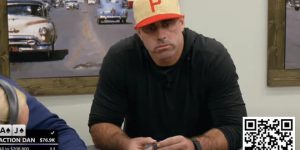 call的话,我比较担心他买花和one pair都不打了,纯空气他会不会bluff我不知道。我手上没有黑桃,我也不想看到连发两张黑桃的局面。