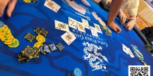 Kabrhel记分牌多起来之后人也活跃起来,Ren Lin则在被对手Gathy多次3bet后,戏谑般拍了他一下。可惜的是,Ren Lin没能晋级。